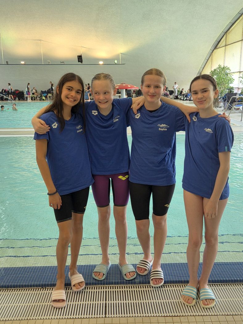 Auch in den Staffelwettbewerben zeigte das Team Geschlossenheit: Die 4x50-Meter-Freistilstaffel der Mädchen (Jahrgang 2013) mit Sophia Tischmann, Jonna D., Milla Stryk und Philippa Mae Leute belegte einen guten siebten Platz. In der 4x50-Meter-Lagenstaffel schwammen Jonna D., Sophia Tischmann, Philippa Mae Leute und Milla Stryk auf Rang fünf.