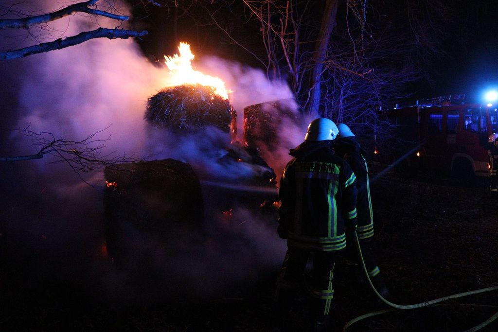 Hüpede. Rund 60 Feuerwehrleute mit 10 Fahrzeugen waren am Samstag, 28. Februar, ab ca. 20.45 Uhr im Einsatz um einen Strohballenbrand im Wald in der Gemarkung Hüpede, zwischen Hüpede und Gestorf zu löschen.