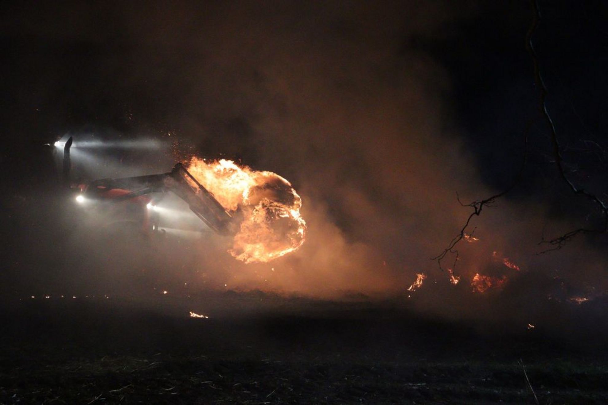 Löscharbeiten an Strohballen. Foto: Henning Brüggemann, FFw der Stadt Pattensen.