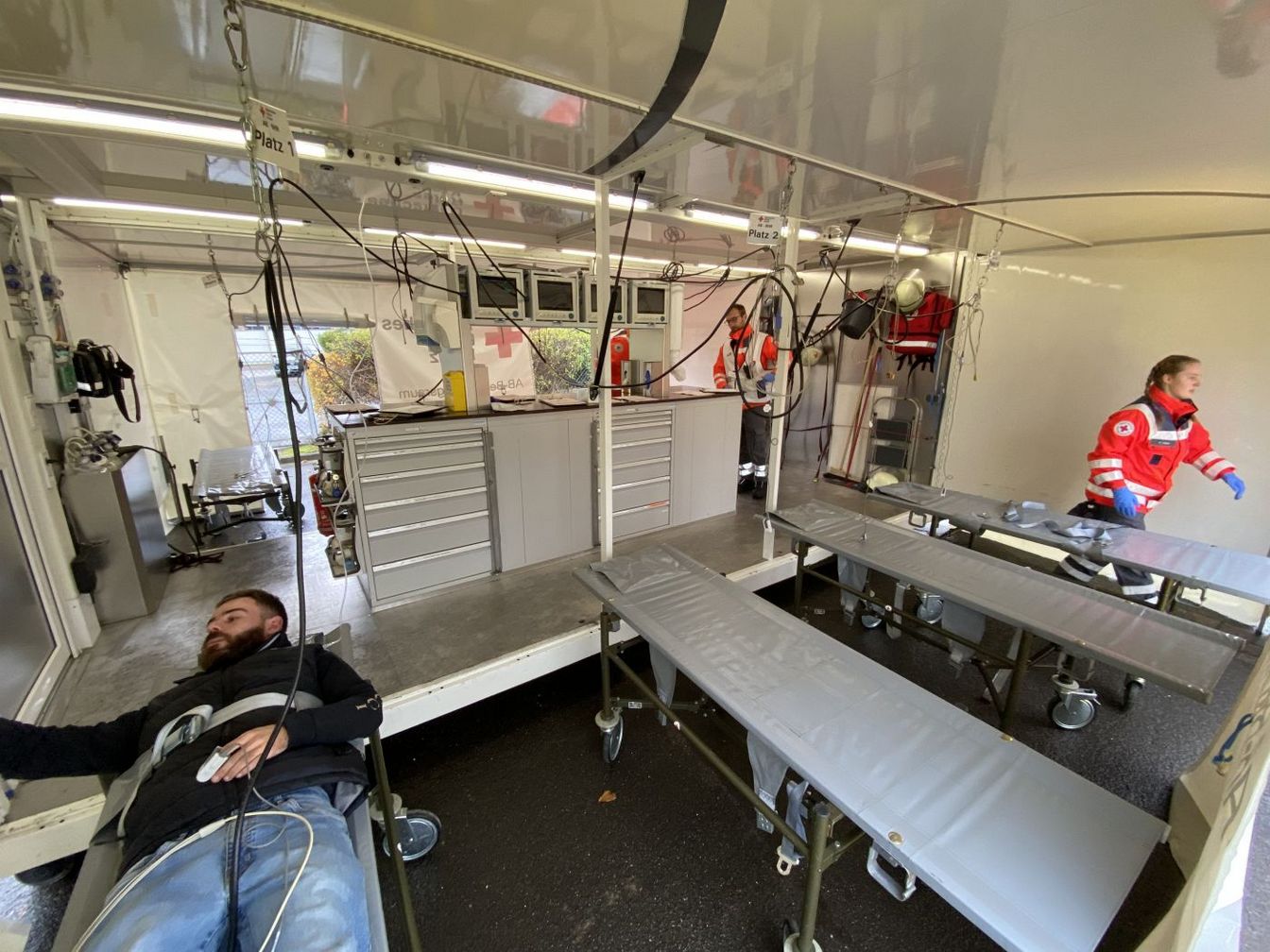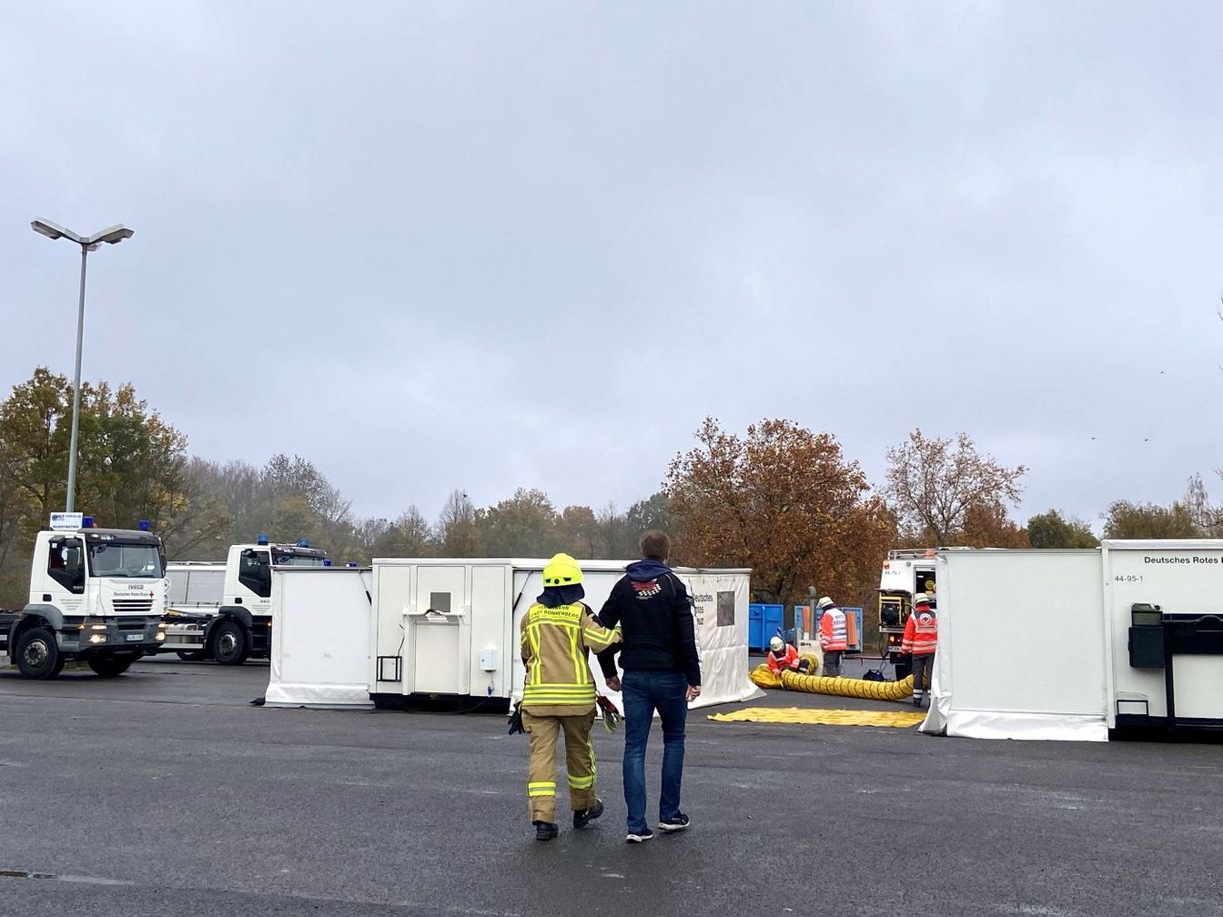 Das Übungsszenario: eine starke Rauchentwicklung in einem großen Gebäude, in dem sich noch mehrere Personen befanden. „Bei solch großen Szenarien hat man zu Beginn des Einsatzes immer eine Mangellage“, so Scheele weiter. „Die Fahrzeuge kommen nach und nach, aber es gibt sofort viele Aufgaben. Das muss koordiniert, bewertet und auch für die noch anrückenden Fahrzeuge geplant werden.“
