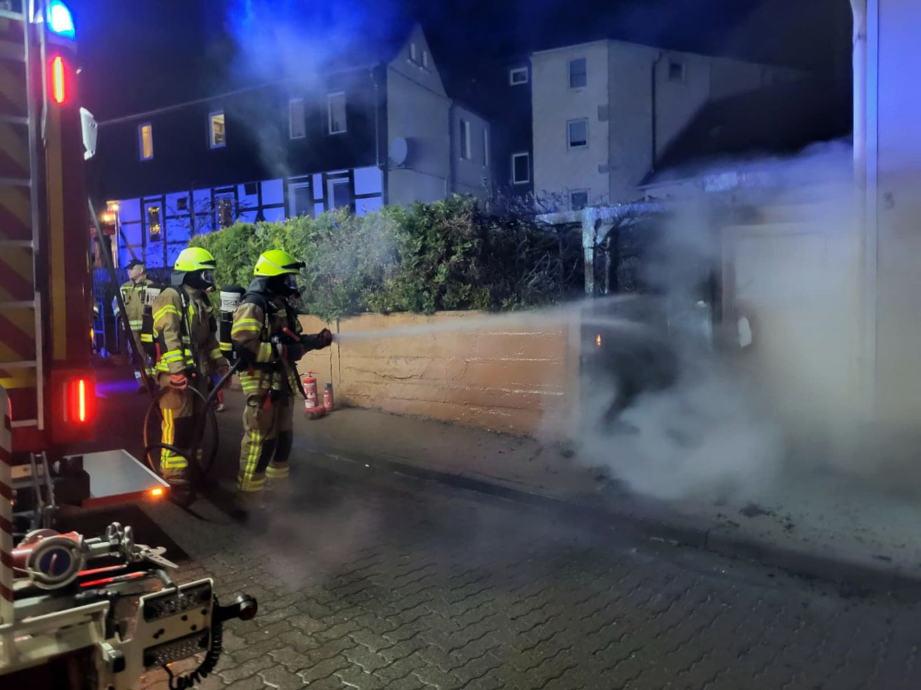 Am frühen Abend folgte um 17.13 Uhr ein gemeldeter Garagenbrand im Uferweg. In einer Garage brannten ein Auto, ein Motorrad sowie weitere abgestellte Gegenstände. Ein Trupp unter Atemschutz ging mit einem C-Rohr zur Brandbekämpfung vor. Angrenzende Garagen wurden kontrolliert, eine Brandausbreitung konnte dabei ausgeschlossen werden. Anschließend belüfteten die Einsatzkräfte die betroffenen Garagen mit einem Akkulüfter. Die ebenfalls alarmierte Feuerwehr Ronnenberg stand zunächst in Bereitstellung, konnte jedoch zeitnah wieder aus dem Einsatz entlassen werden.