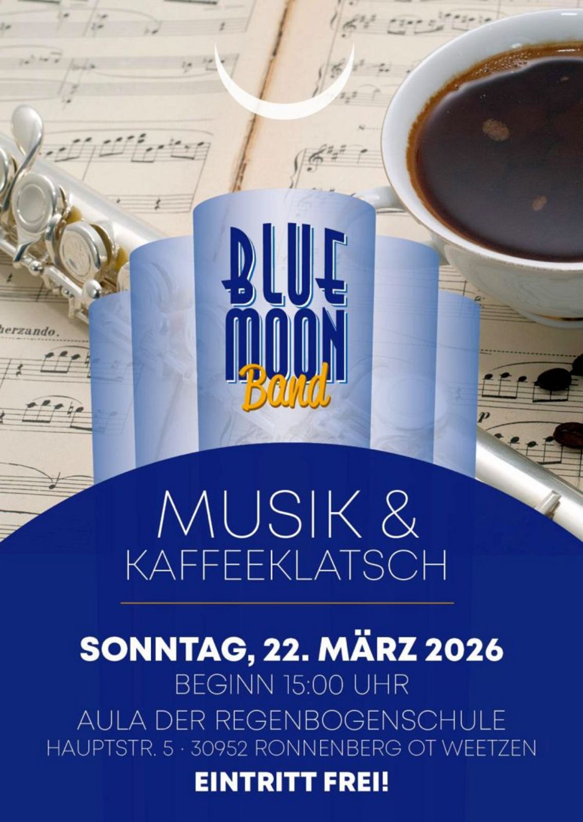 Weetzen. Die Blue Moon Band der Musikvereinigung Weetzen lädt am Sonntag, 22. März, wieder zu ihrer beliebten Veranstaltung „Musik & Kaffeeklatsch“ ein. Unter der Leitung von Phil Thrift erwartet die Besucher ein musikalischer Nachmittag mit bekannten Hits aus mehreren Jahrzehnten im typischen Bigband-Sound.