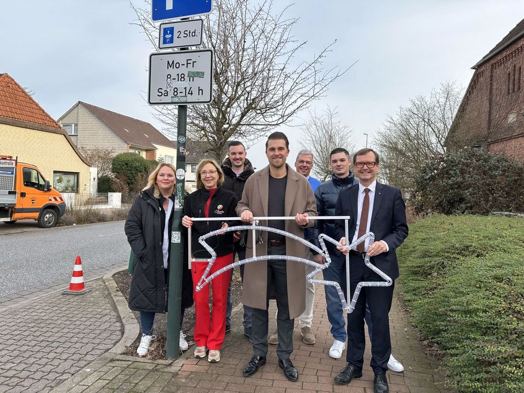 Vor Ort waren neben Bürgermeister Marlo Kratzke auch mehrere in der Nenndorfer Straße ansässige Unternehmen vertreten, darunter die Fleischerei Scheller, das Hotel und Restaurant Öhlers, die Volksbank sowie Claudias Pizzeria. Gemeinsam präsentierten sie die neue Beleuchtung im alten Ortsmittelpunkt.