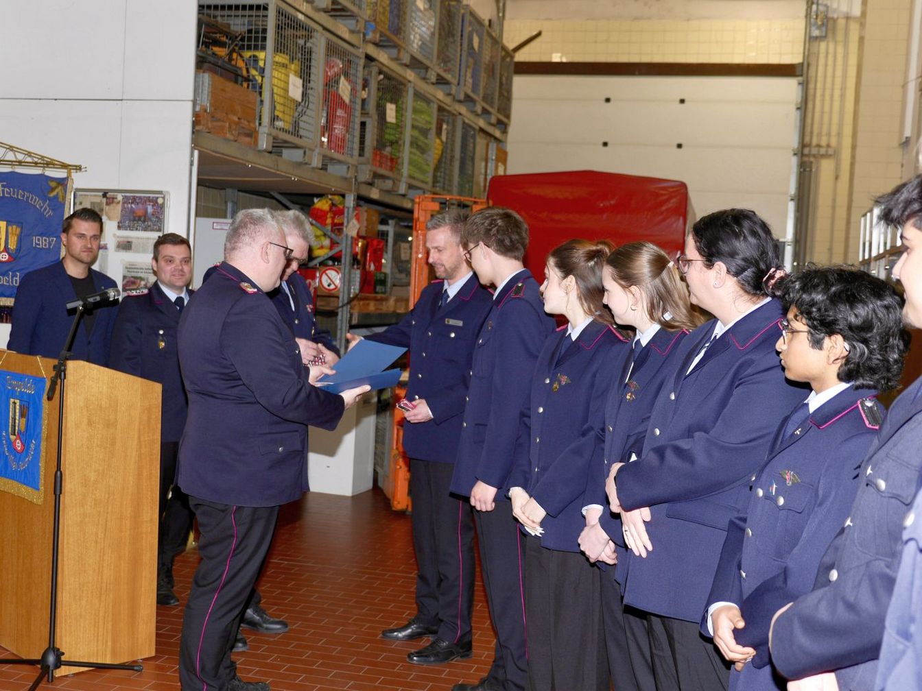 Den Bericht der Kinder- und Jugendfeuerwehr stellte Miriam Buchler vor. Sie bedankte sich herzlich bei allen Betreuerinnen und Betreuern für ihr großes Engagement. Aktuell gehören 49 Kinder der Kinderfeuerwehr und 39 Jugendliche der Jugendfeuerwehr an. Besonders erfreulich sind 21 Neueintritte in der Kinderfeuerwehr sowie drei in der Jugendfeuerwehr. Ein bedeutender Ausblick gilt dem CTIF-Landesentscheid im Jahr 2027 als auch am 27. September 2026 der Leistungsspange auf Regionsebene. Beide Veranstaltungen werden in Empelde ausgetragen.