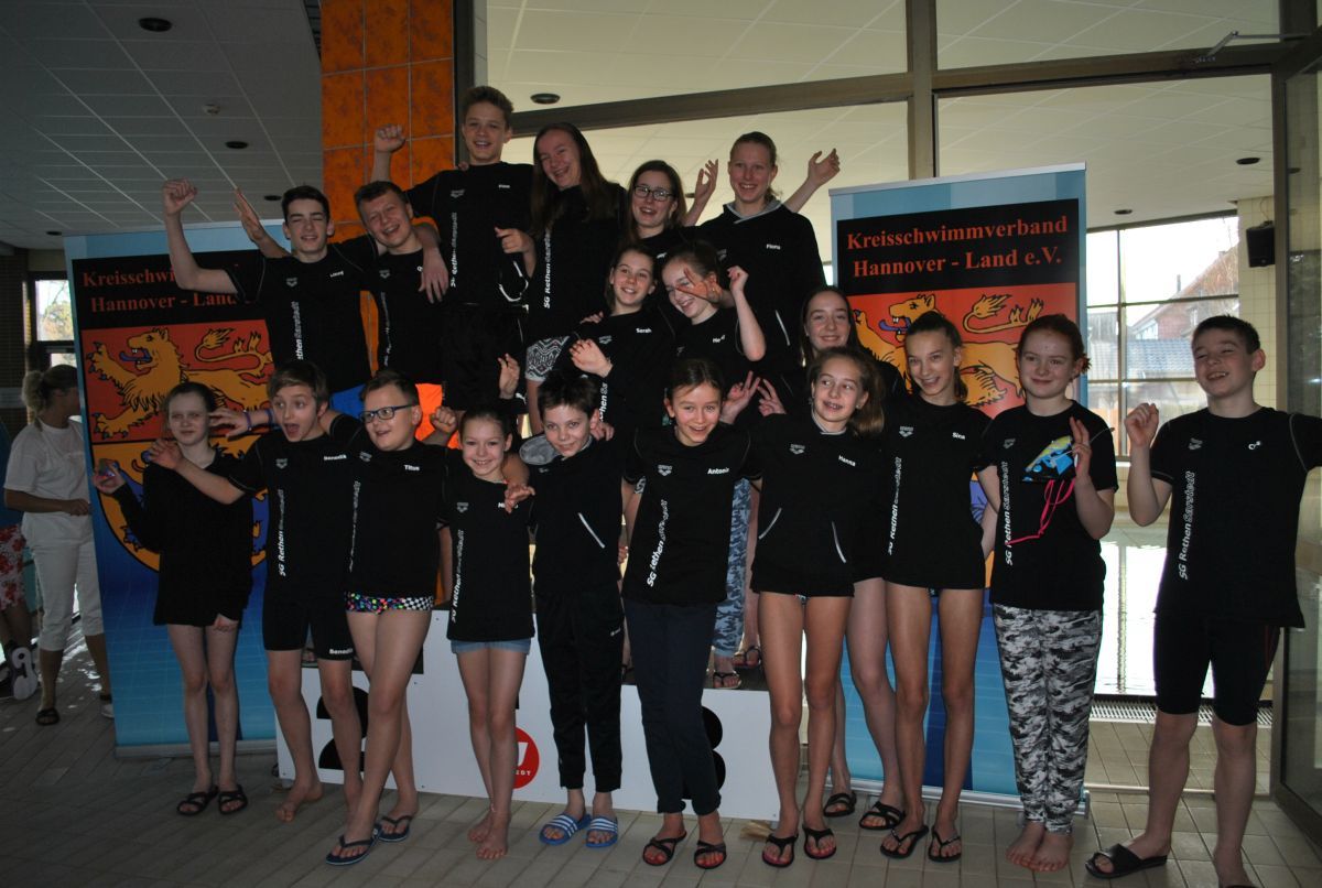 Zu den Kreisstaffelmeisterschaften des Kreises Hannover Land trafen sich am Samstag 291 Schwimmer aus 13 Vereinen im Innerstebad Sarstedt, um die Besten vierer Teams bestimmter Jahrgänge zu ermitteln. Die SG RethenSarstedt war erneut Gastgeber, wobei das Sarstedter Team die Hauptorganisatoren waren. Die Erfahrungen aus dem letzten Jahr halfen, um einen noch optimaleren Ablauf rund um diesen Wettkampf zu gewährleisten. Auch das leibliche Wohl kam nicht zu kurz, so fanden die Hot Dogs guten Anklang und auch die Waffeleisen liefen heiß. Wie schon im letzten Jahr, gab es viele positive Rückmeldungen. Die Staffelmeisterschaften sind immer sehr beliebt, denn nicht bei jedem Schwimmwettkampf können vierer Teams an den Start gehen. So waren in diesem Jahr auch mehr Meldungen als im Vorjahr abgegeben. In der weiblichen Staffel der Jahrgänge 2006 bis 2009 waren sogar bis zu 21 Staffeln am Start. Die SG RethenSarstedt schickte vier Staffeln ins Rennen. Insgesamt konnte fünf mal über Platz zwei gejubelt werden. Da die Staffeln immer über mehrere Jahrgänge (2006-2009 weiblich, 2006-2009 männlich, 2002-2005 mixed sowie Junioren- Erwachsene) besetzt wurden, gab es schon altersbedingt Unterschiede. Die Mixedstaffel lieferte sich oft einen spannenden Kampf mit dem Team aus Altwarmbüchen, wobei sie leider immer das Nachsehen hatten. Die vier mal 50 Meter Bruststaffel hatte mit zehn Hundertstel den knappsten Rückstand, wobei die Mannschaft deutlich jünger war. Die Jungenstaffel der Jahrgänge 2006-2009 musste sich zwei mal mit dem undankbaren 4.Platz (von 13 Staffeln) zufrieden geben, aber mit deutlich jüngeren Schwimmern lässt dies für das nächste Jahr hoffen. Alle hatten eine Menge Spaß bei diesem Teamwettkampf.
