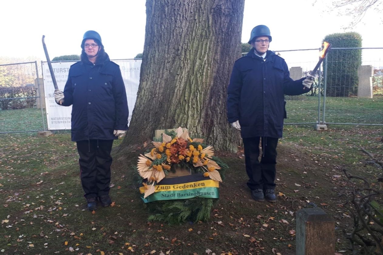 Der diesjährige Volkstrauertag hat die Ortsfeuerwehr Egestorf vor Herausforderungen gestellt: Wie schon vorher durch die Stadt Barsinghausen bekannt gegeben wurde, ist das Denkmal am Steinradweg / Försterbrücke zur Zeit aus Sicherheitsgründen gesperrt. Parallel zur Kranzniederlegung befanden sich die meisten Kameradinnen und Kameraden bei einem Großeinsatz (Dachstuhlbrand in Barsinghausen).