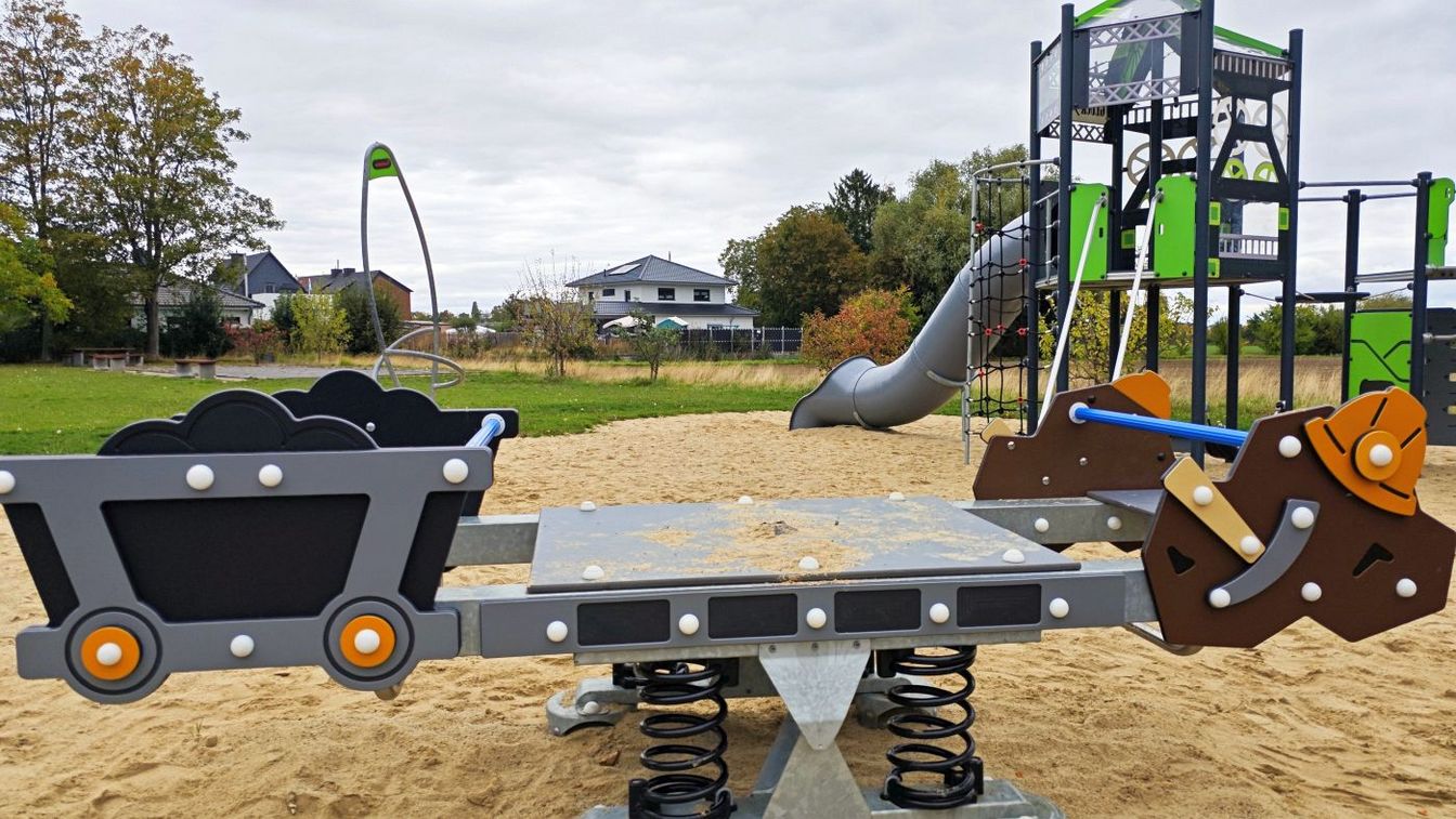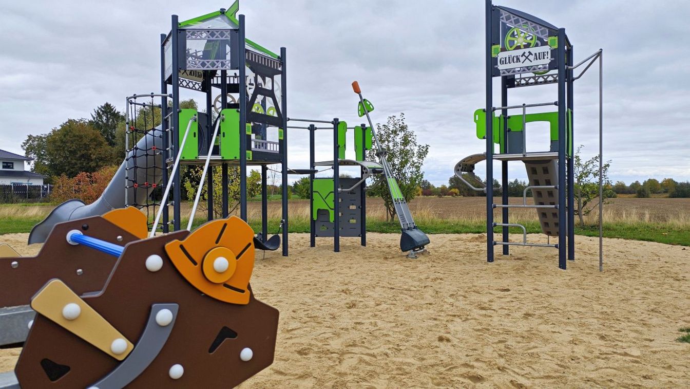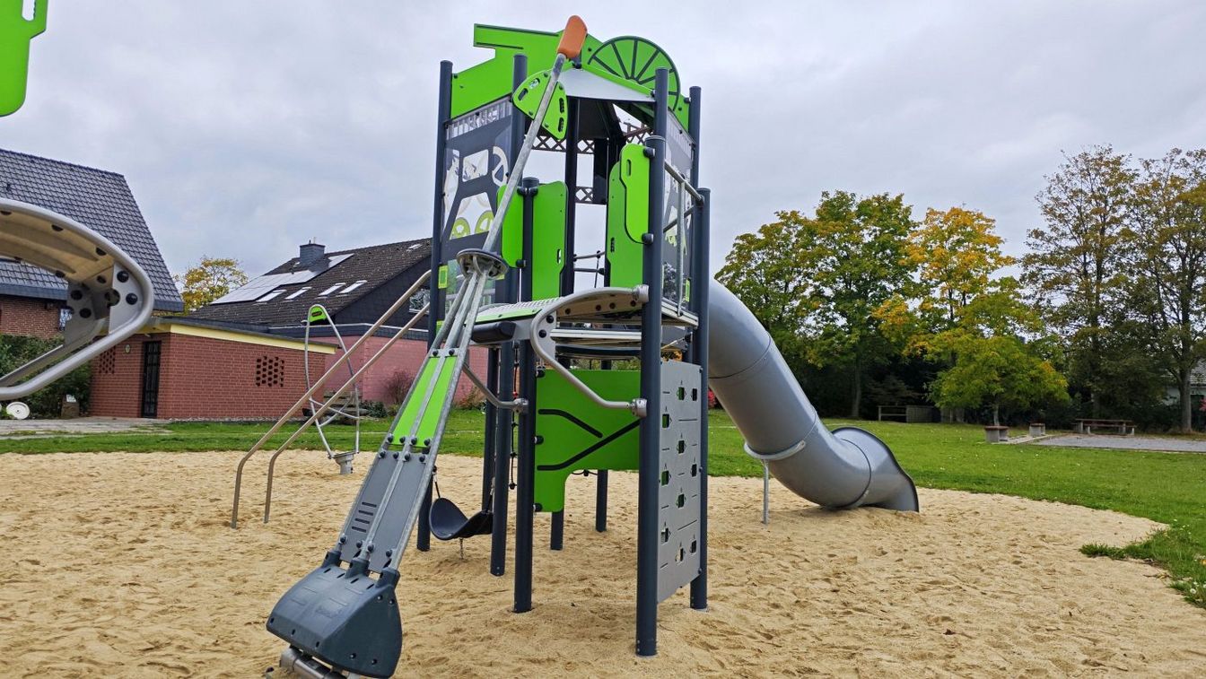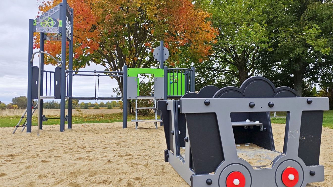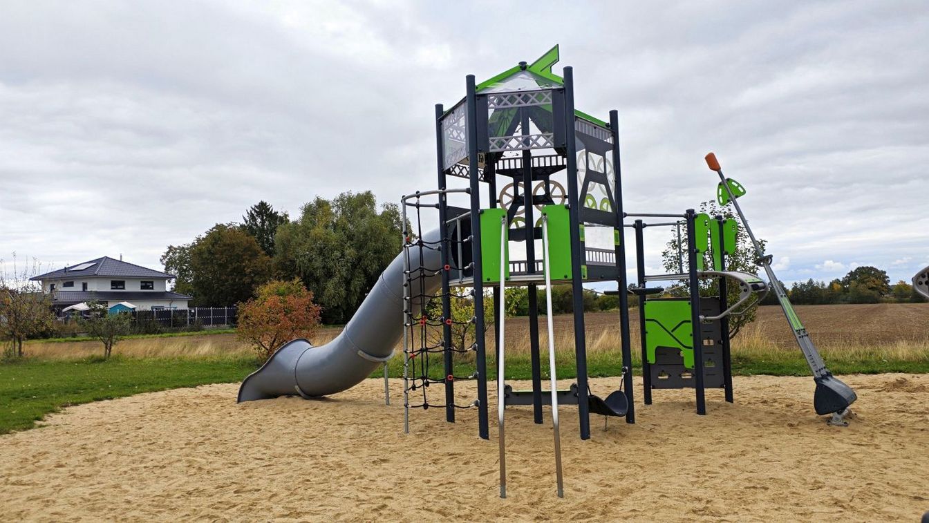 Der Bau des Spielplatzes wurde 2024 abgeschlossen. Da er nicht direkt an einer Straße liegt, war kein Zaun erforderlich – dadurch stand mehr Budget für Spielgeräte zur Verfügung. So gibt es eine große Kletterkombination für Kinder von 4 bis 12 Jahren und eine kleinere Variante für 2- bis 6-Jährige. Auch ein Trampolin, eine große Wippe, eine Lore, eine Schaukel, ein Sandkasten und Sitzgelegenheiten für Eltern gehören zur Ausstattung. Die Kosten beliefen sich auf rund 180.000 Euro.