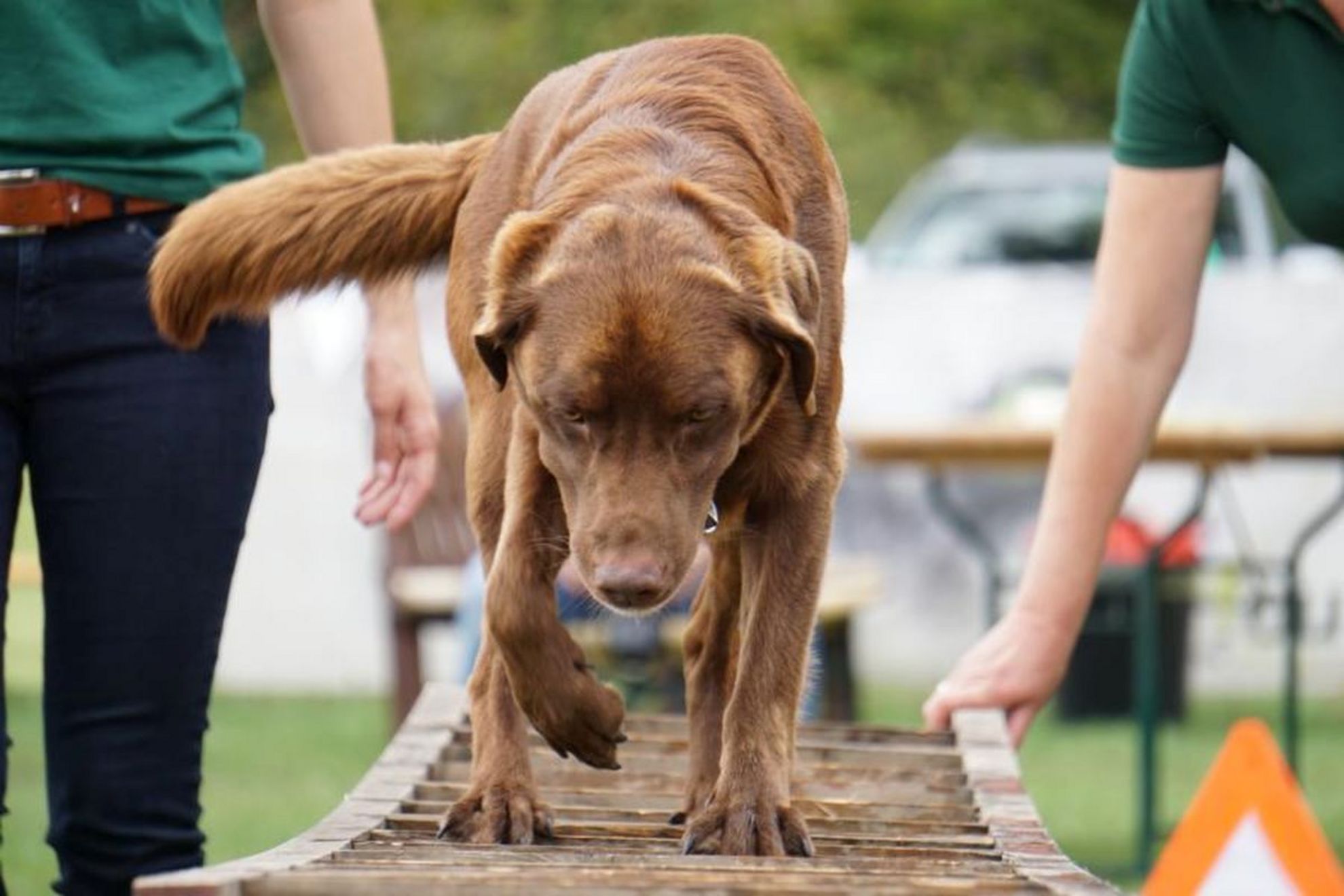 Begleitet wurde der Tag durch ein buntes Rahmenprogramm, mit Aktionen und Angeboten für die ganze Familie. Dazu gehörten spannende Vorführungen aus dem Hundesport, bei denen zum Beispiel die Rettungshunde ihr Können auf verschiedenen Geräten und in anderen Übungen zeigten. Auch die Rallye-Obedience Gruppe hatte eine tolle Vorführung mit Musik und Choreographie vorbereitet. Der Spaßparcours zum Mitmachen für Besucher mit Hund, war ebenfalls gut besucht. Hier konnte jeder Teilnehmer Preise und Pokale gewinnen und sein Können bei kleinen Hindernissen und Gehorsamsübungen zeigen. Ergänzt wurde der Tag durch die Darbietung der Band „The Joy of Music“, die für etwa 1,5 Stunden Stücke aus ihrem musikalischen Repertoire zum Besten gab. Natürlich durfte am Ende eine Zugabe für die begeisterten Zuschauer nicht fehlen.