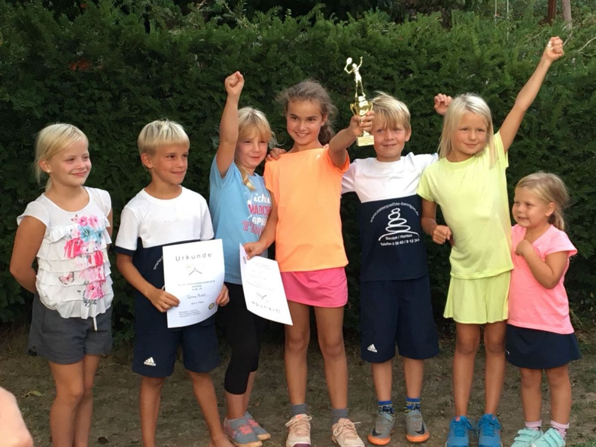 Bei den Springer Stadtmeisterschaften durften sie noch nicht mitmachen, dafür sind sie noch zu klein. Eine Vereinsmeisterschaft sollten die Jüngsten des Tennisvereins Bennigsen aber dennoch als Saisonabschluss bekommen. Sechs Kinder im Alter von sieben und acht Jahren kämpften diese Woche auf dem Kleinfeld mit den großen roten Bällen um die Vereinsmeisterkrone. In zwei Gruppen spielten die Kids jeder gegen jeden. Am Ende kämpften die Gruppenersten und -zweiten jeweils gegeneinander um die Platzierungen. Im Spiel um Platz drei konnte sich Amelie Müller ganz knapp gegen Sarah Trzewik durchsetzen. Das große Finale bestritten Paula Häusler und Tamme Brock. Auch durch ihren enormen Trainingsfleiß konnte sich am Ende Paula durchsetzen und wird U8-Vereinsmeisterin 2018.