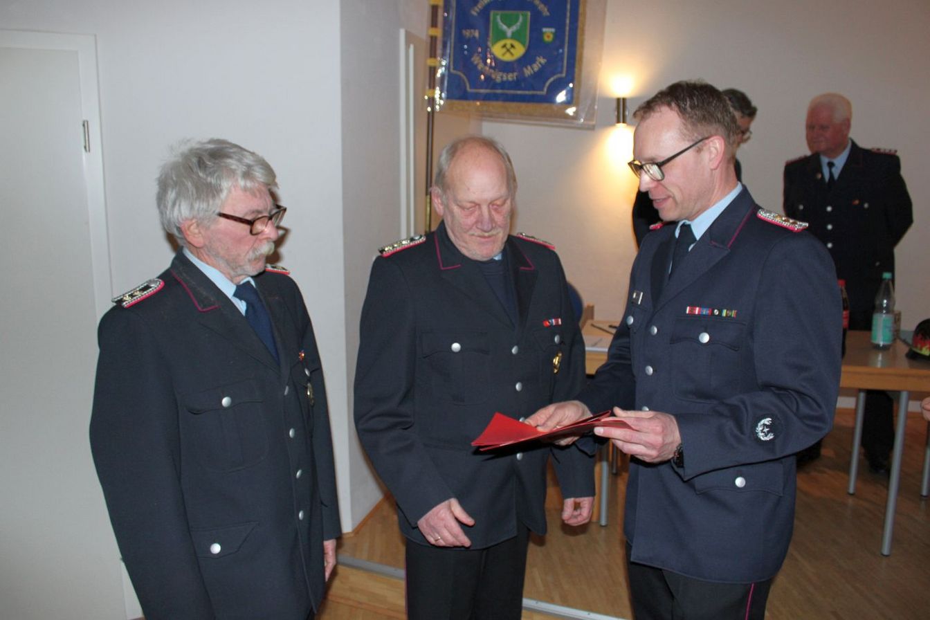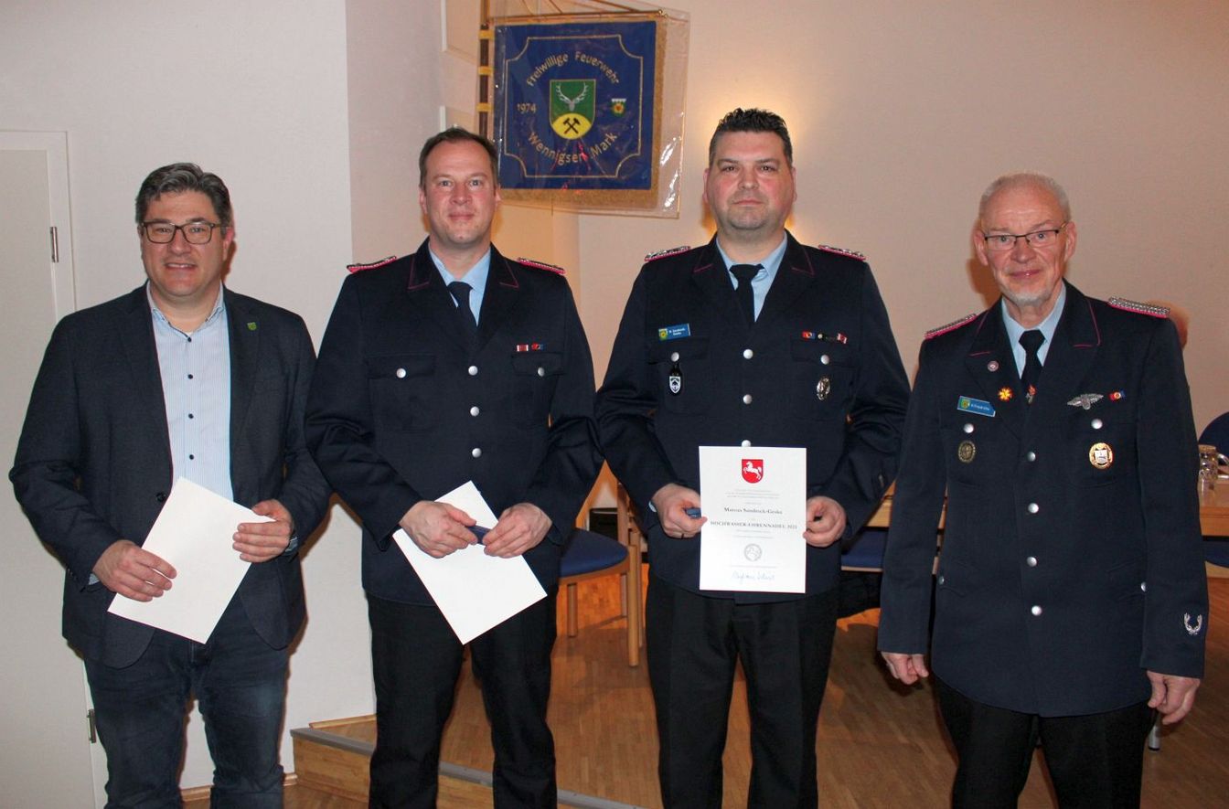 Bürgermeister Ingo Klokemann lobte die Verlässlichkeit der Ortswehr. Gerade im kleinen Ortsteil Wennigser Mark zeige sich, was Feuerwehr in einem Ort ausmache. Zur Zeltgarage konnte der Bürgermeister mitteilen: „Wir haben den Bauantrag für eine Garage bei der Region gestellt, aber leider noch keine Genehmigung erhalten, um loszulegen.“ Mit Rückblick auf den Großbrand an der ehemaligen Polizeischule habe sich gezeigt, wie wichtig jede Ortswehr sei, aber auch die Zusammenarbeit und das Miteinander zwischen den Ortswehren – auch über die Gemeindegrenze hinaus.