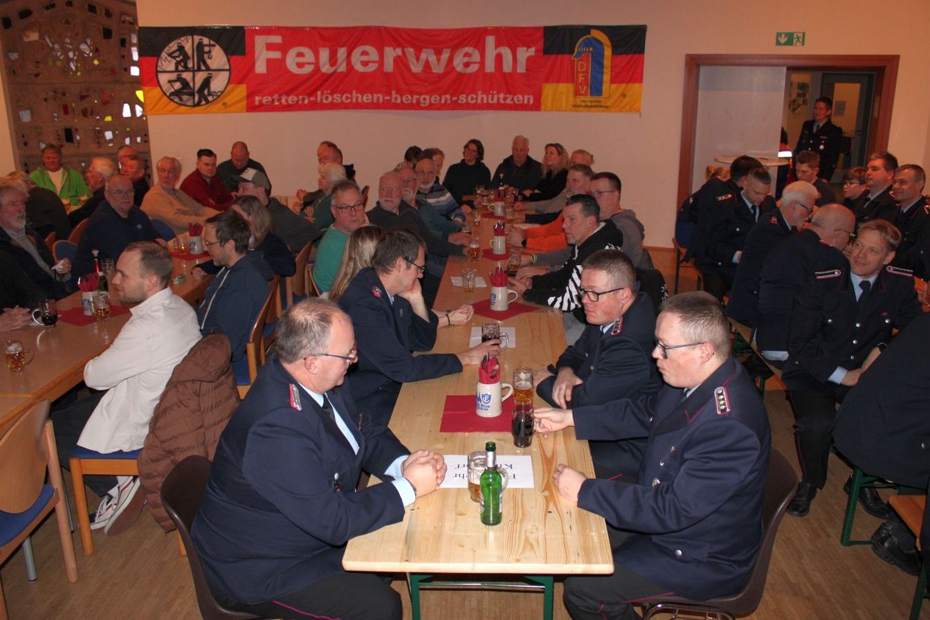 Zum Abschluss leitete Ortsbrandmeister Friedrichs in den gemütlichen Teil der Sitzung mit einem gemeinsamen Essen über. Er dankte noch einmal allen Beteiligten, seinem Stellvertreter, Rat und Verwaltung sowie allen Funktionsträgern für ihren Einsatz für das Gelingen in der Ortswehr. „Das ist nicht selbstverständlich. Gut Wehr.“