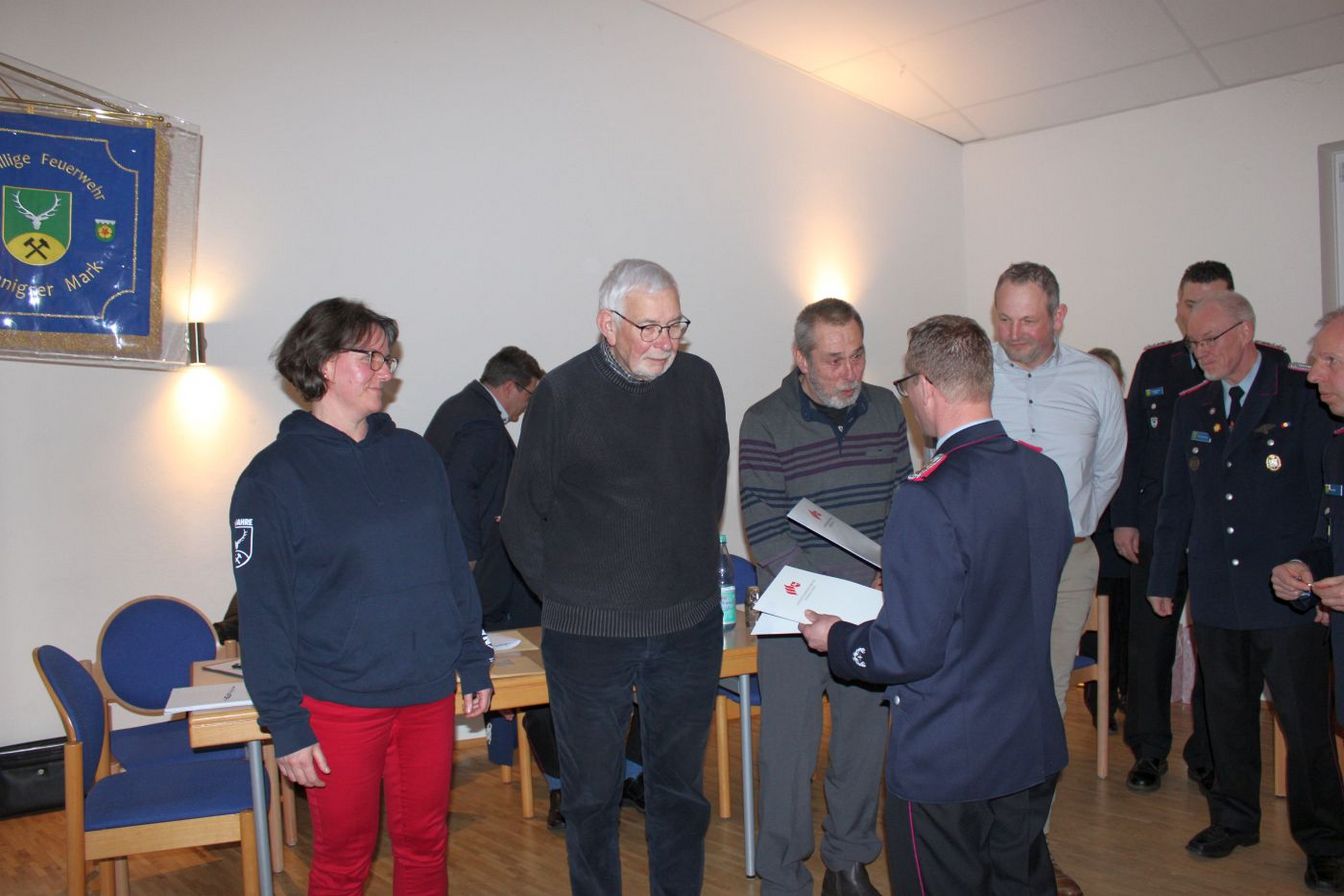 Von den fördernden Mitgliedern wurden Verena Weber und Sven Rump für 25 Jahre geehrt sowie Horst Kaufmann für 40 Jahre. Für 50 Jahre wurde Dietmar Schwalbe geehrt.