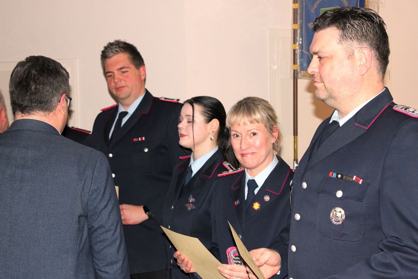 Ben Lühmann und Christoph Voigt wurden zu Feuerwehrmännern befördert. Mia-Francis Lösche ist nun Oberfeuerwehrfrau, und Torben Lindhorst darf sich Hauptfeuerwehrmann nennen. Julia Heumann-Friedrichs wurde zur Löschmeisterin befördert. Markus Sandrock-Geske wurde zum 1. Hauptlöschmeister befördert.