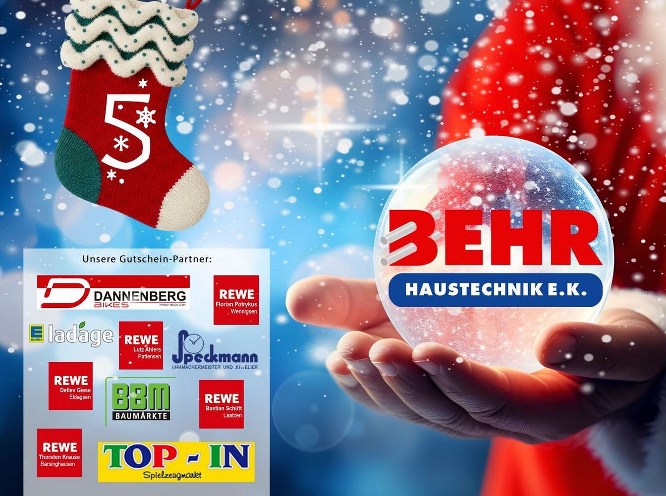 die festliche Jahreszeit ist in vollem Gange. Und wir möchten die Vorfreude auf Weihnachten mit Ihnen teilen. In diesem Jahr haben wir wieder etwas ganz Besonderes für Sie vorbereitet – unseren digitalen Adventskalender. Heute mit dem Tagespartner Behr Haustechnik aus Bredenbeck.
