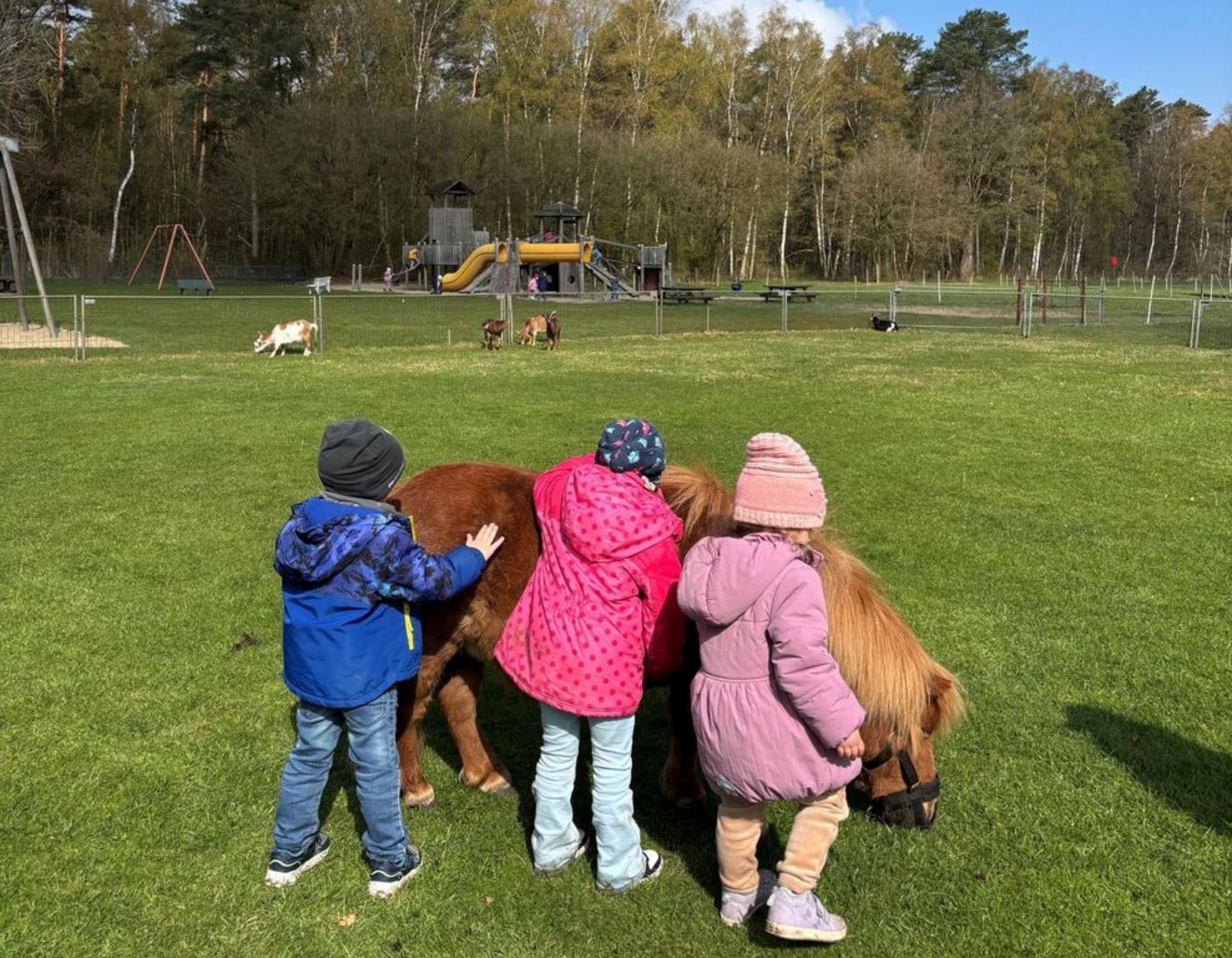 Der Höhepunkt des Ausflugs war die Geburt von zwei kleinen Zicklein, die während des Aufenthalts der Kindergruppe zur Welt kamen. Wer genug vom Reiten, Streicheln und Pflegen hatte, konnte sich anschließend auf dem Abenteuerspielplatz oder dem Fahrzeugparcours austoben.