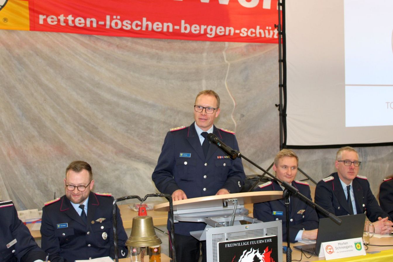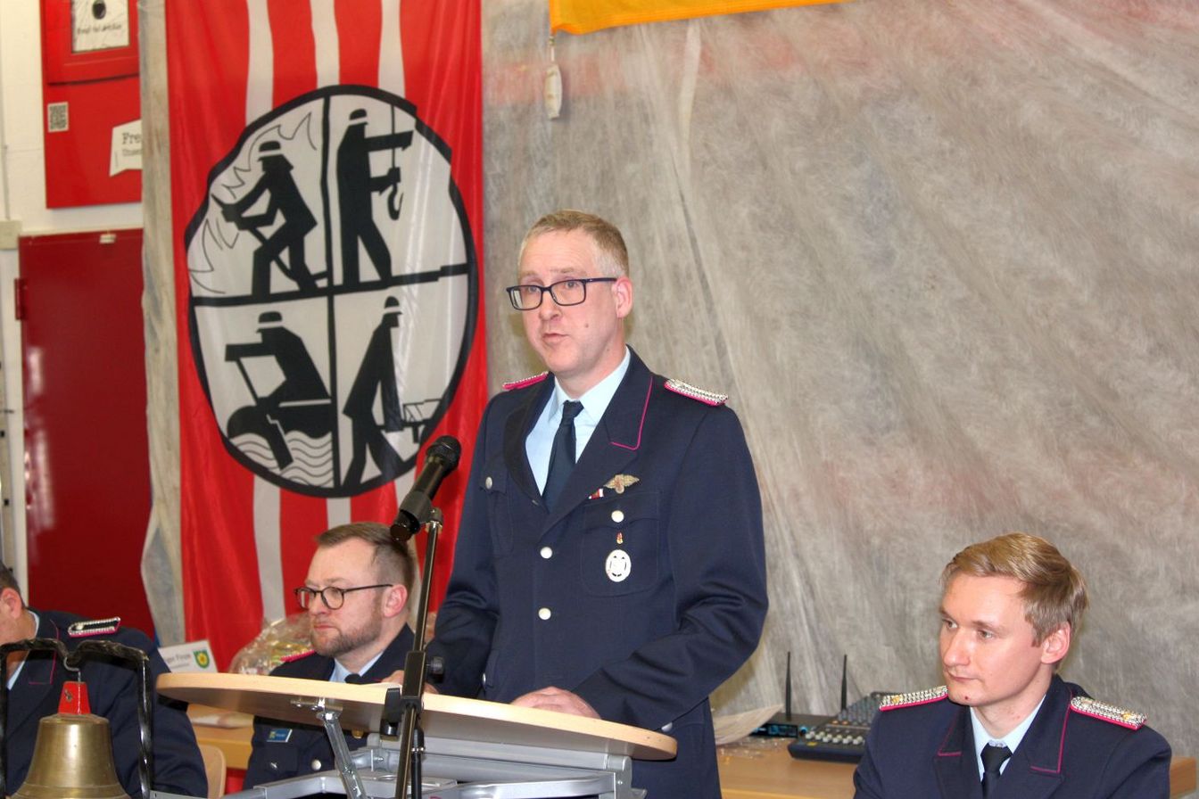 Bürgermeister Ingo Klokemann freute sich, dass trotz Schnee so viele zur Versammlung gekommen waren. „Die aktuellen Witterungsverhältnisse zeigen, wie solche Lagen den Alltag aufmischen und wir froh sein können euch zu haben.“ Klokemann erinnerte an den tagesaktuellen Einsatz in Holtensen. Dieses hohe Engagement zeige sich auch an dem jahrzehntelangen Engagement von beispielsweise Uwe Bullerdiek (ehemaliger Gemeindebrandmeister) und Karl-Heinz Mensing (ehemaliger Regionsbrandmeister). „Aber ihr alle leistet einen unverzichtbaren Beitrag in unserer Gemeinde“, so der Bürgermeister.